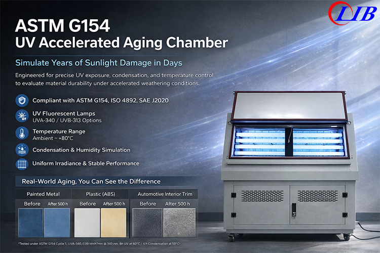 Industri LIBMenawarkan ASTM G154 ruang tes penuaan presisi tinggi yang dirancang untuk daya tahan, stabilitas, dan kustomisasi. Kelebihan utama termasuk: