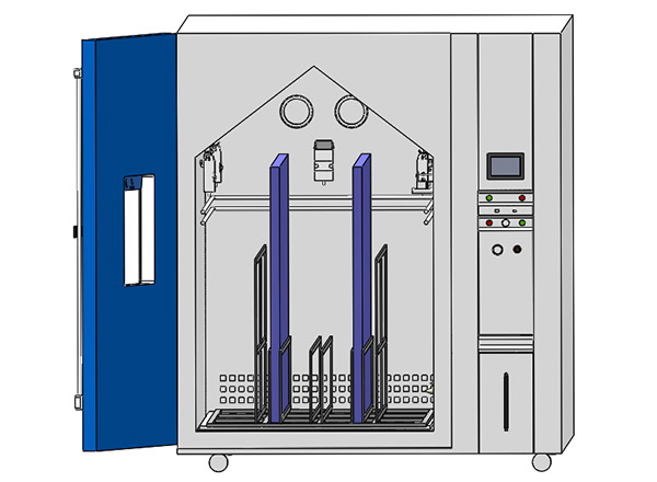 Ruang uji semprotan garam berjalan di LIB Yang memungkinkan operator untuk langsung berjalan dan memasang seluruh panel fotovoltaik, dan juga dapat menyesuaikan sudut kemiringan untuk menyederhanakan skenario pemasangan yang berbeda seperti atap dan tanah. LIB menetapkan jumlah menara semprot sesuai dengan ukuran ruang kerja untuk memastikan bahwa semprotan garam tersebut disemprotkan secara merata ke setiap bagian ruang kerja.