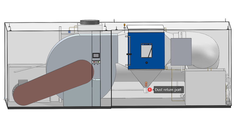 4. Siklus Debu adalah untuk mengumpulkan debu yang jatuh melalui struktur berbentuk corong bawah, dan setelah penyaringan melalui layar jala dari port koleksi, kipas inhalasi kembali dan diangkat ke ruang atas ruang uji untuk mencapai daur ulang debu berulang.