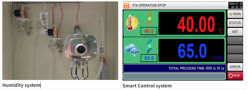 Sistem kontrol yang intuitif memungkinkan pre-set atau profil yang sepenuhnya disesuaikan, termasuk ramping bertahap, siklus langkah, atau simulasi kondisi ekstrem. Studi penuaan yang dipercepat dapat dilakukan untuk memprediksi stabilitas jangka panjang dalam waktu singkat.