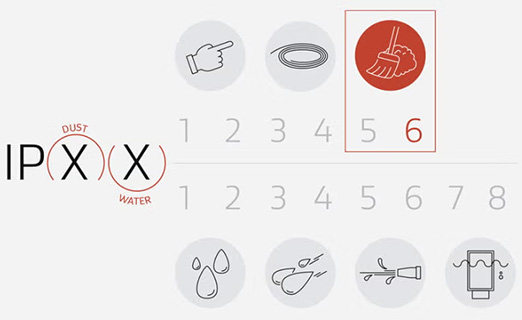 6 | Pakaian ketat debu (IP6X) | Tidak ada ingress debu; Perlindungan lengkap. |
